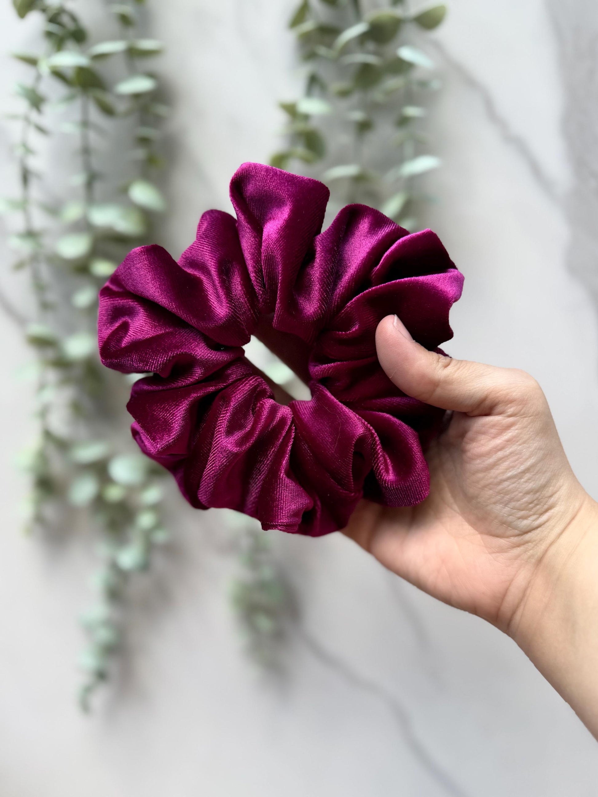 Fuchsia Velvet Scrunchie: Handmade Hair Tie for Thick Hair
